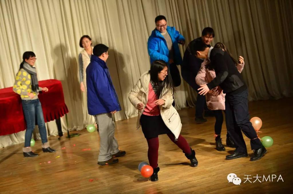 天津大学MPA的同学们在舞台上尽显才华,歌曲《好日子》、诗朗诵《我希望,太阳升起之时》、舞蹈《大王叫我来巡山》、魔术表演、歌曲《伤痕》、吉他演奏《喜欢你》,各种形式的节目令联欢会高潮迭起,欢声阵阵。联欢会上精心设计的游戏环节“笑”果不断,增加了同学间的默契。