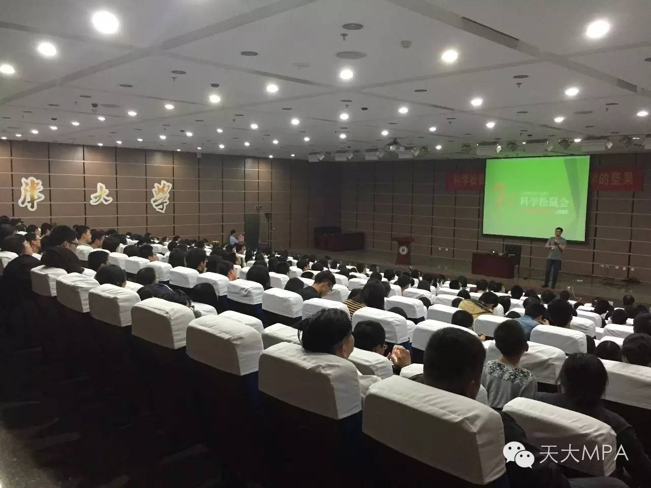 5月14日,知名民间科普机构科学松鼠会走进天津大学,为在校生们带来一次有趣新鲜的科普讲座。能容纳400人的天南楼C4报告厅座无虚席。活动由天津大学经管学部、南开区科协、科学松鼠会共同主办,天大MPA承办。