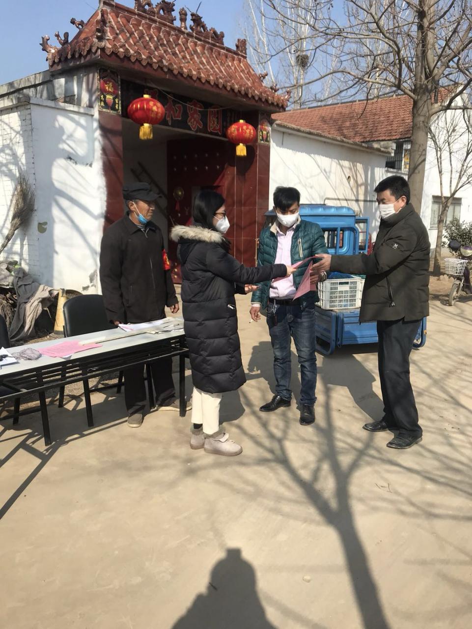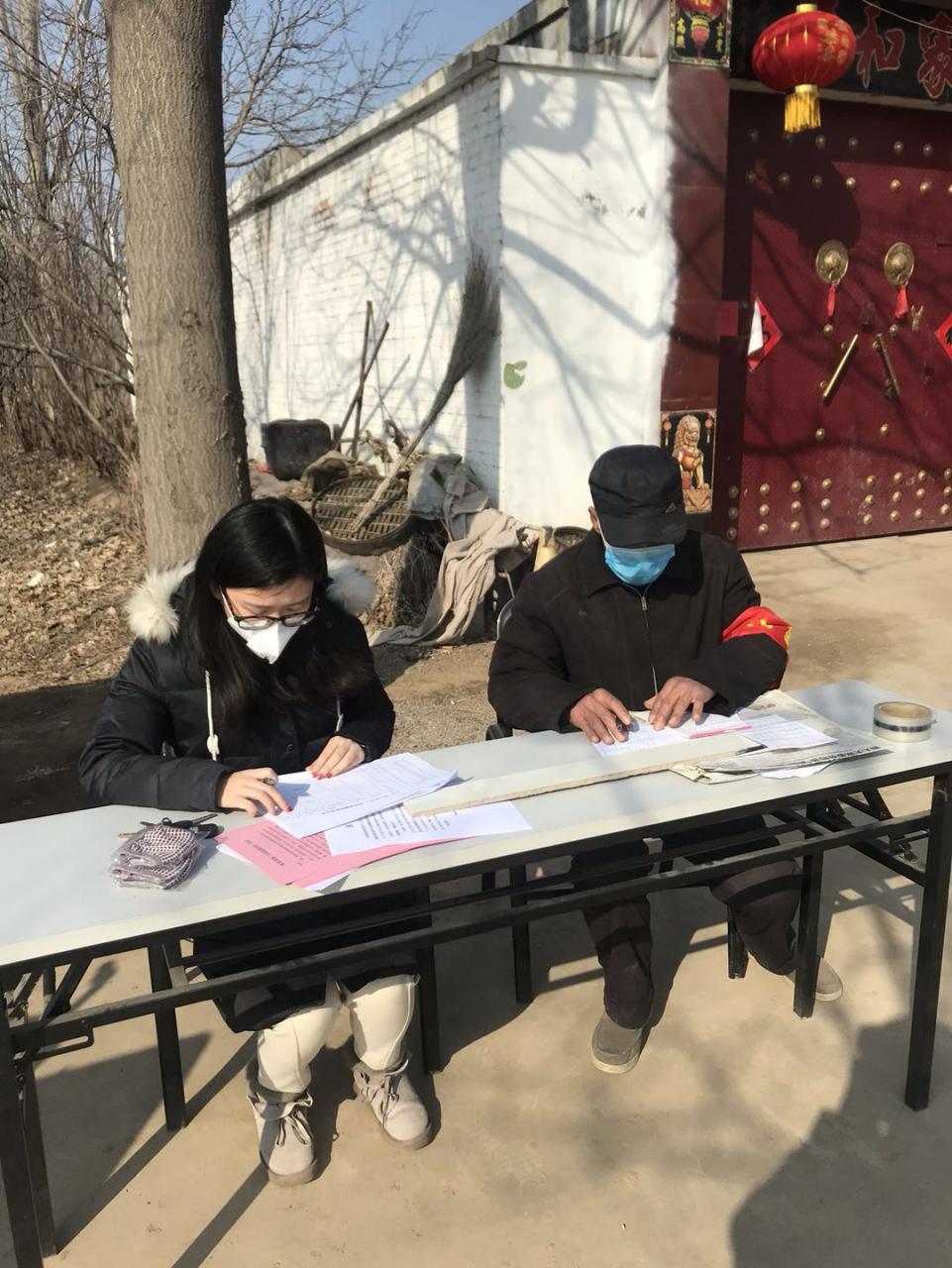 光是宣传还不行,入户排查、测量体温、路口封锁,一样都不能少。她带领着村干部挨家挨户排查外地返乡人员信息、为村民测量体温、宣传疫情防控信息。