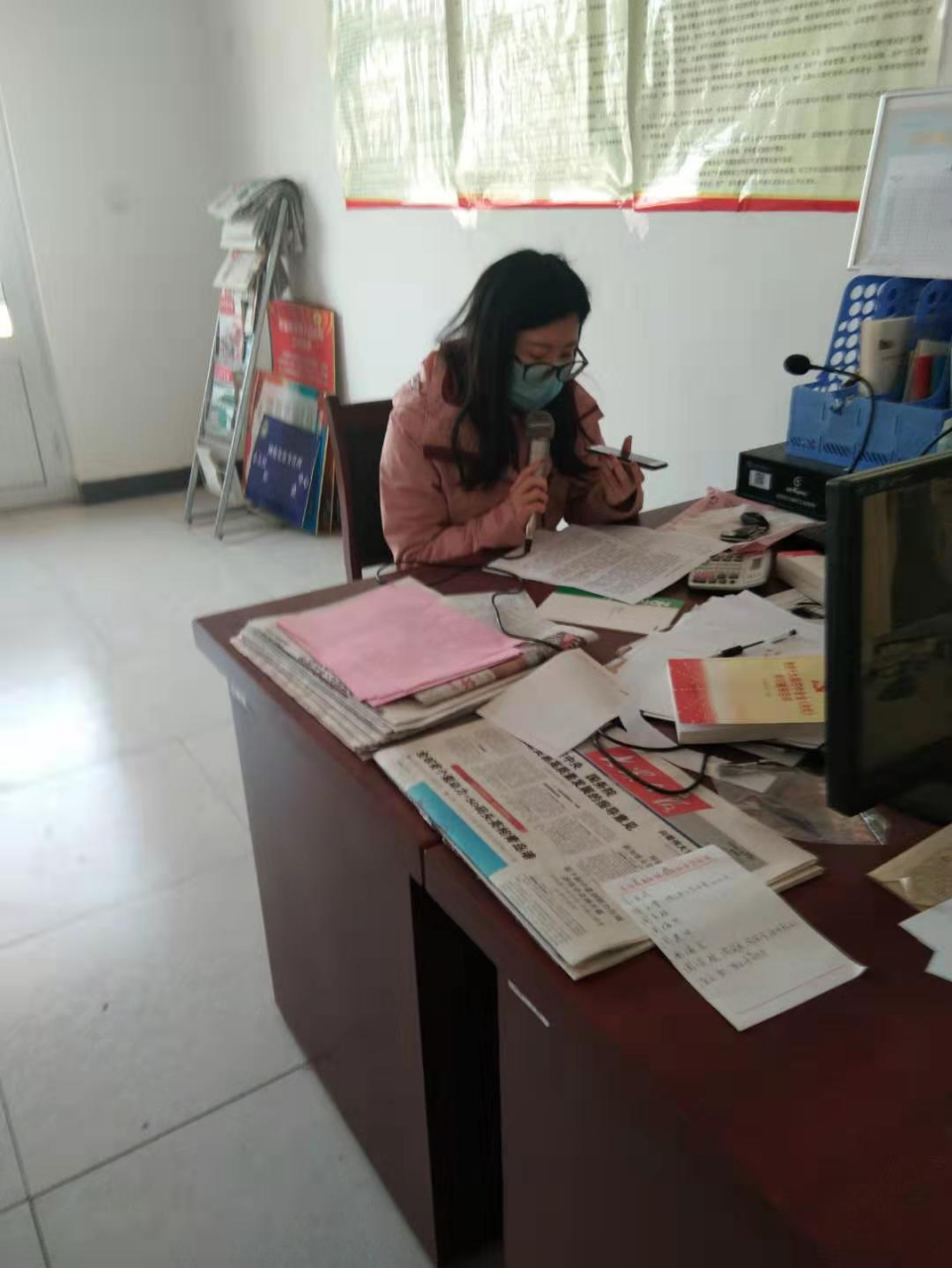 没有任何耽搁,大年初二,她就在所包的村里上岗了。当时疫情严峻,但村民的防控意识还很薄弱。当她到了村里,看到还有人在村广场上不戴口罩地唠嗑聊天时,她十分着急,驱散了村民,马上跑到村办公室,打开村广播招呼了起来,“大家注意啊,现在正是疫情十分严重的时候,大家不要到处乱跑,一定要老老实实呆在自己家中,不要串门、走亲戚,现在已经发现有聚集式传播了啊,要是咱们村有一个人有情况,那就会祸害咱一家人、一个村的人···”,嗓门是越喊越大,越说越停不下来,画风完全变成了“彪悍的大妈风”。