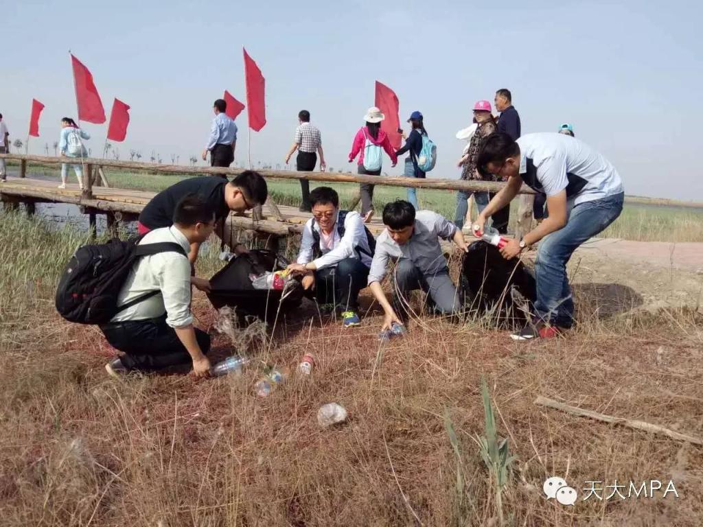 五一劳动节当天,来自天津大学MPA专业的14名同学来到南大港湿地自然保护区,观赏湿地风光,同时义务做起了志愿者,捡拾和清理湿地垃圾,向游客做环保宣传,用实际行动呵护渤海湾畔的这颗明珠。