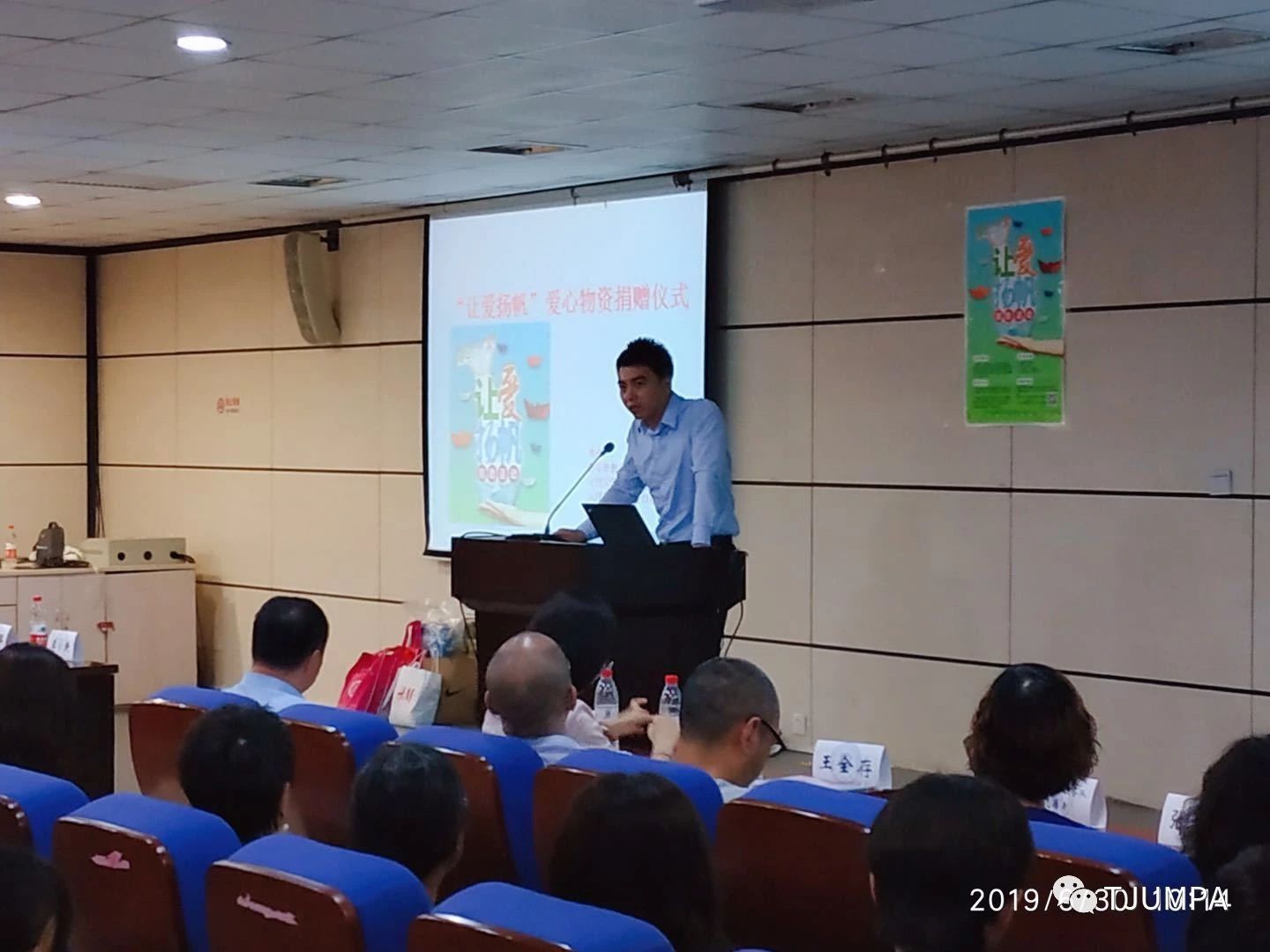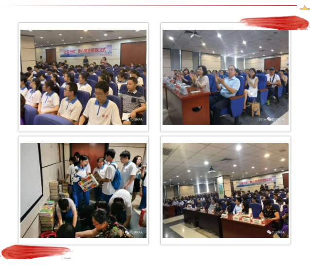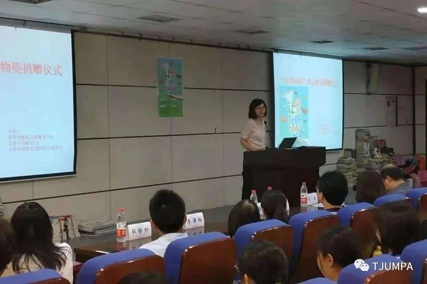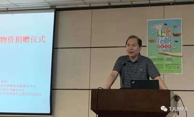 6月30日上午10时,“让爱扬帆”爱心物资捐赠仪式天津大学MPA专场在天津大学卫津路校区25号楼A座拉开帷幕。共青团开发区委员会书记李诗南、天津大学管理与经济学部党委副书记李庚、共青团天津大学委员会副书记刘佳、天津大学MPA项目主任陆明远、青年梦想家志愿服务中心理事长韩璐、天津大学MPA中心招生与学工主管毕珍珍、天津大学MPA联合会主席马晓琳、逸阳梅江湾国际学校二年二班班主任李洪梅、耀华中学家长代表王全存与会。青年梦想家志愿服务中心、耀华志愿服务队志愿者、天津大学MPA学子及耀华中学、逸阳梅江湾国际学校的家长代表和同学代表近100人参会。仪式由天津大学校友潘悦然主持。