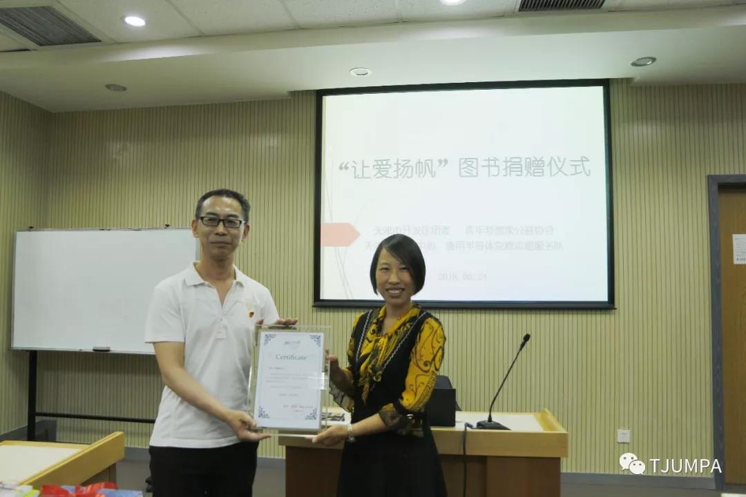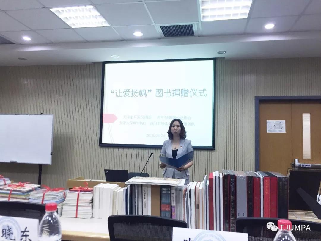 捐书助学,传递书香,心系教育,利在千秋。夏日炎炎,滨海新区茶淀街后沽小学的孩子们在迎来暑假开心玩耍的同时,需要更多的书籍充实头脑,润泽心灵。2018年6月24日,由天津大学MPA中心、天津市开发区团委、青年梦想家公益协会、通用半导体党群志愿服务队联合组织的“让爱扬帆”图书捐赠仪式在天津大学公共管理学院管理与经济学部成功举行。这是天津大学MPA联合会自走进“太阳村”、清水行动、“衣分温暖,衣分爱心”等志愿服务系列公益活动后推出的又一爱心善举。