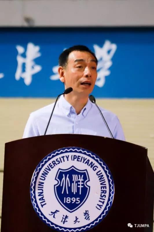 在教师代表致欢迎辞之后,2018级研究生新生代表陈洪泽,作为一名在职场上已经取得一定成就的人士,讲述了自己逐梦北洋的故事,他在工作多年之后不忘初心,毅然决定追寻自己学生时代的梦想,最终考入了天津大学,实现了自己的北洋梦,引来众多MPA、MBA、MEM、EMBA等专业新生的共鸣。
