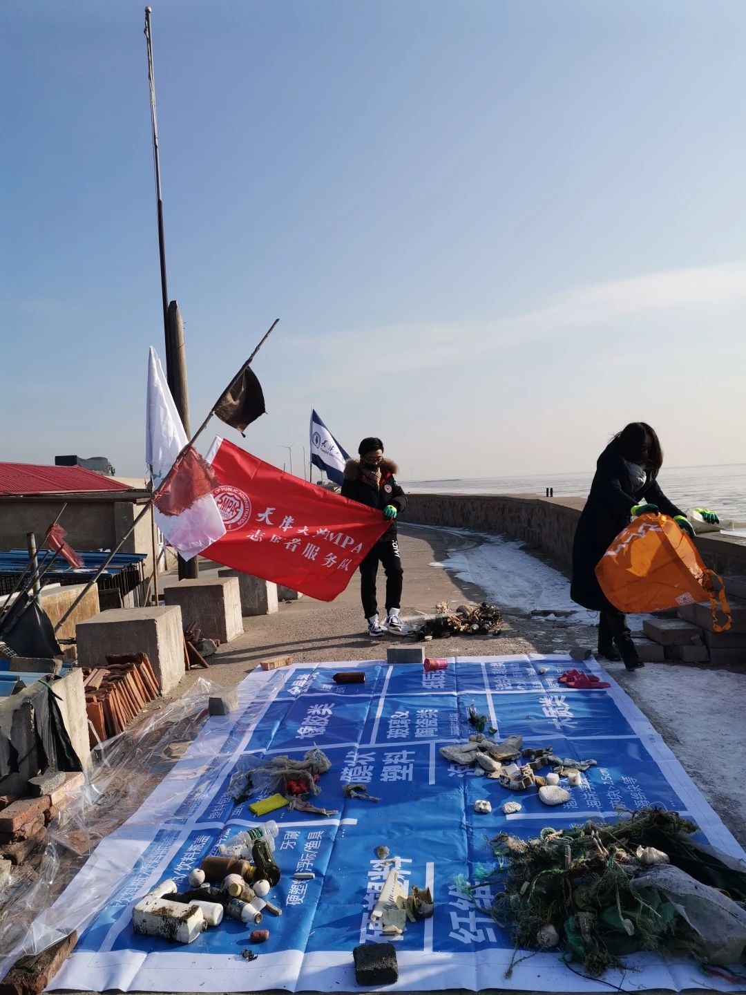 2020年1月12日上午9点,天津大学管理与经济学部MPA公益服务队携手天津绿邻居社区环保工作站组织了“守护海岸线-海岸考察活动”,活动地点在滨海新区大神堂码头,活动具体内容为:做守护海岸线垃圾科研监测。希望通过此活动,让更多的人关注海洋环境问题,让保护海洋成为社会共识,控制和减少海洋垃圾的产生,营造爱护海洋环境、保护水资源的思想理念。