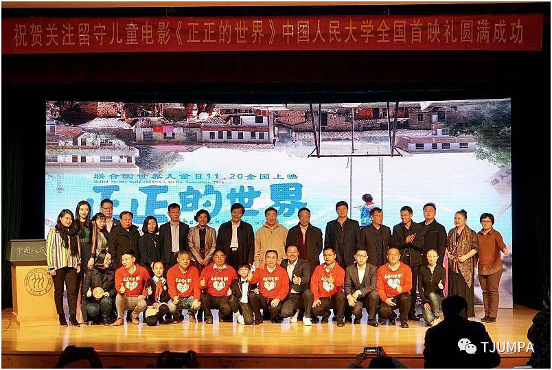《正正的世界》是一部超越电影本身的关注留守儿童电影,在中国人民大学举行了全国首映礼,全国人大常委、民盟中央副主席、中国社会保障学会会长郑功成、中国人民大学党委副书记郑水泉出席首映礼并呼吁社会各界关爱留守儿童,中央电视台、人民网、新华网、光明网、全国政协官网、共青团中国青年网、南方周末等权威媒体大幅报道。