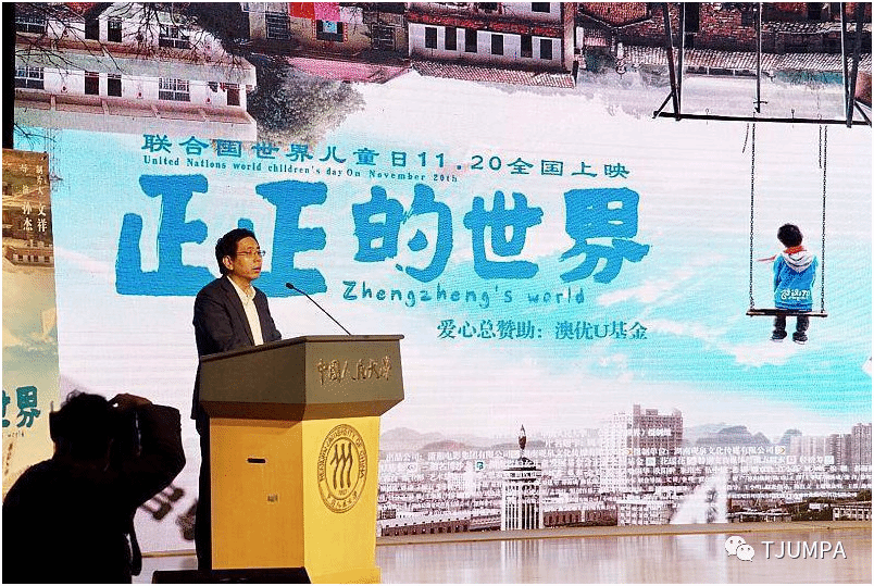 全国人大常委、民盟中央副主席郑功成先生为《正正的世界》首映做活动发言。