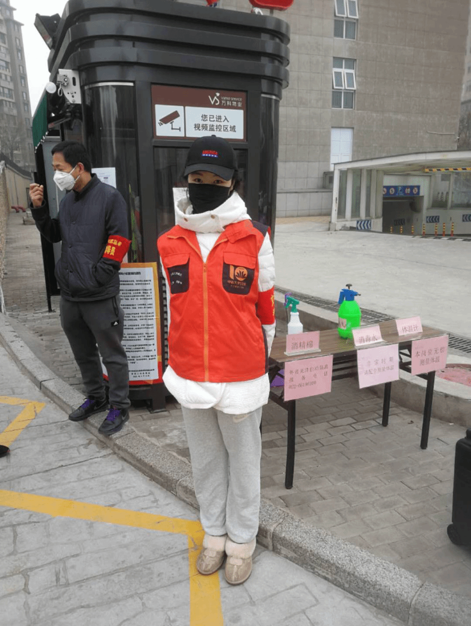 在这关键时刻,金晔站了出来,不推诿、不躲避,下沉社区,听从指挥,服从管理,每天在寒风中站岗巡逻,为小区居民监测体温、为进出车辆做好登记、为公共区域消毒清洁。