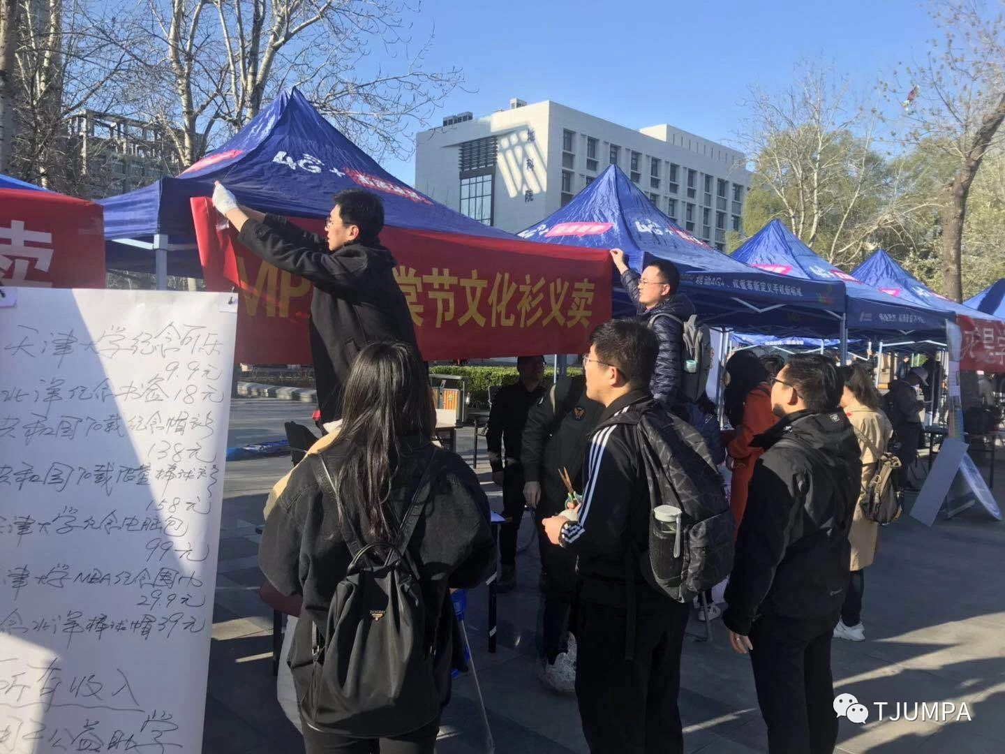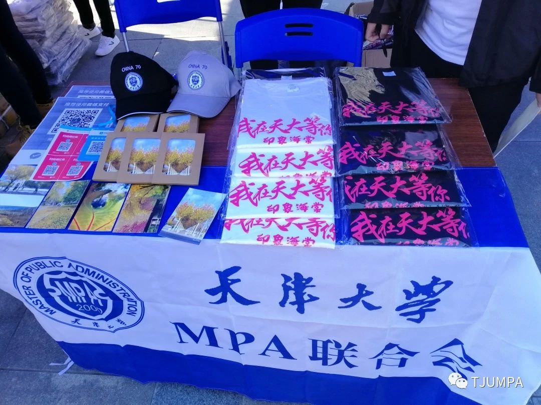 此次义卖MPA同学设计推出了“我在天大等你——海棠印象”文化衫,袖口印有MPA字母图样,文化衫定制了黑白两款,尺码齐全,活动现场购买文化衫可获赠第一届摄影大赛明信片一张。