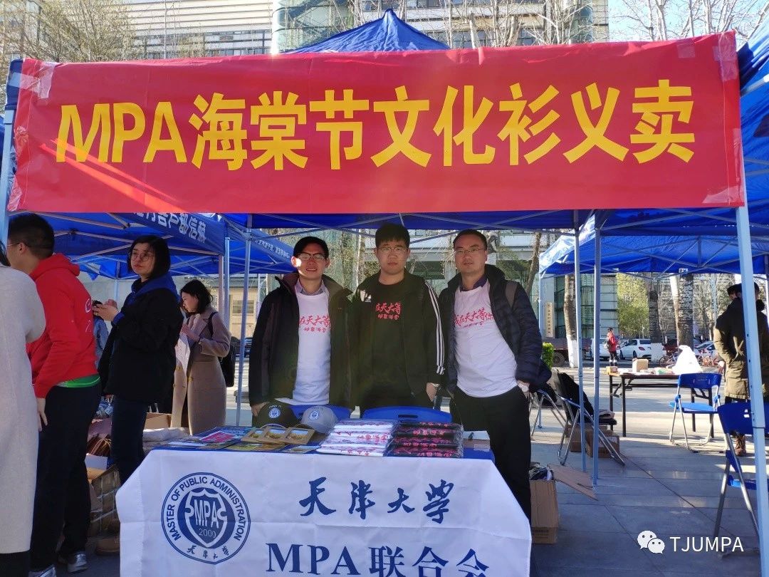 3月31日上午8时,MPA联合会成员及义卖志愿者早早来到了北洋广场,在阿姨们广场舞的歌曲声中搭建起MPA海棠节活动帐篷。