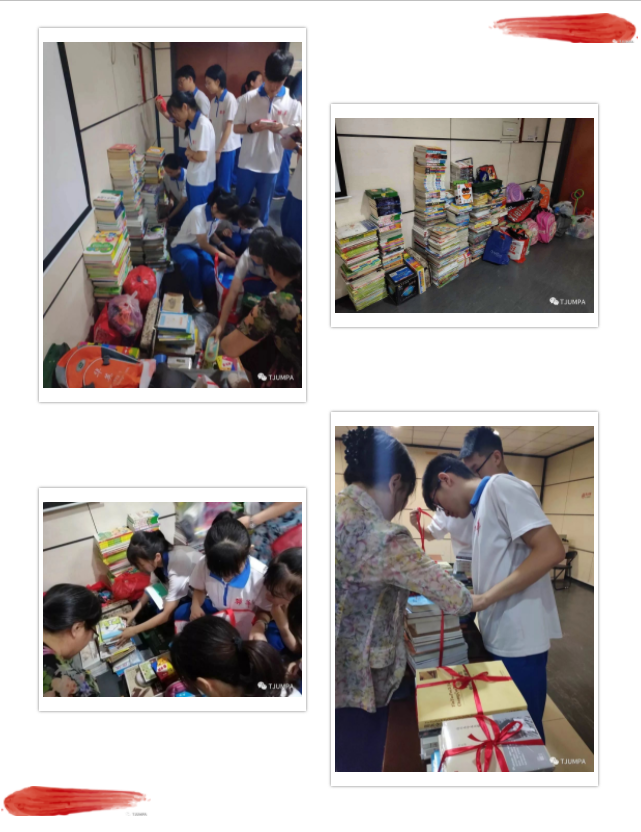 天津大学MPA联合会主席马晓琳,耀华中学家长代表王全存,学生代表五人宣读捐赠明细并发表活动感言。天津大学MPA中心捐赠书籍300余册,食品20箱,耀华中学捐赠爱心物资共计两千八百余件套,包括书籍、文具、衣物等。开发区团委书记李诗南为天津大学MPA中心、耀华志愿服务队及逸阳梅江湾国际学校同学颁发捐赠证书。