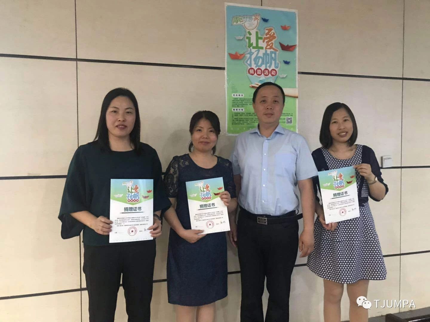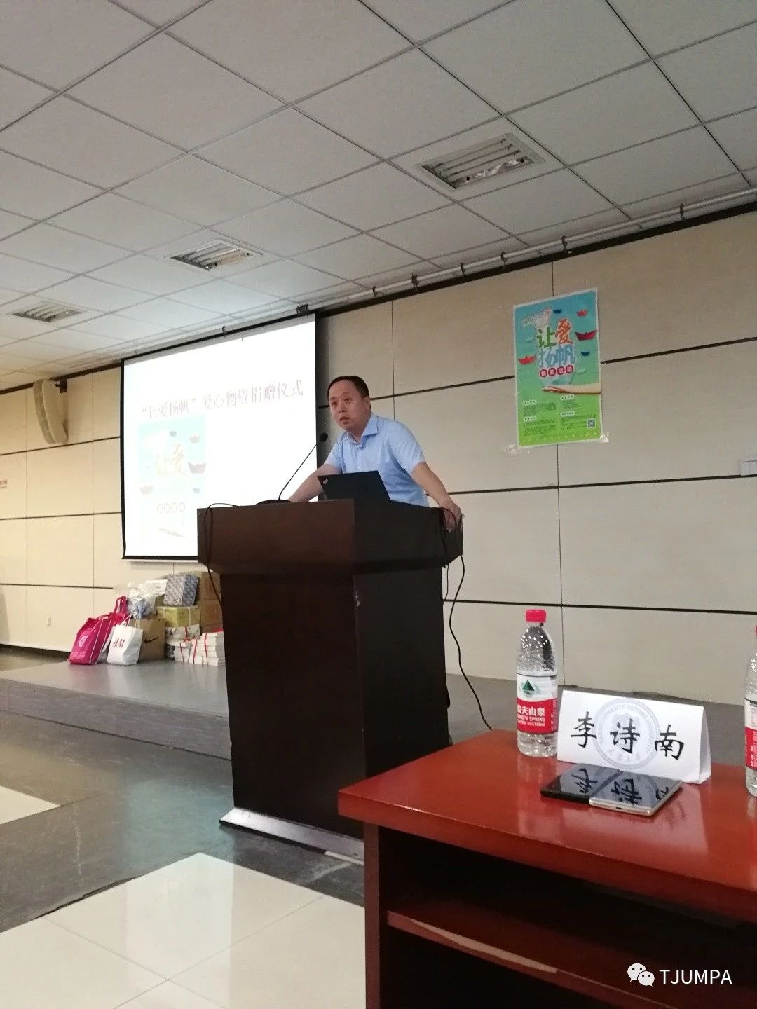 6月30日上午10时,“让爱扬帆”爱心物资捐赠仪式天津大学MPA专场在天津大学卫津路校区25号楼A座拉开帷幕。共青团开发区委员会书记李诗南、天津大学管理与经济学部党委副书记李庚、共青团天津大学委员会副书记刘佳、天津大学MPA项目主任陆明远、青年梦想家志愿服务中心理事长韩璐、天津大学MPA中心招生与学工主管毕珍珍、天津大学MPA联合会主席马晓琳、逸阳梅江湾国际学校二年二班班主任李洪梅、耀华中学家长代表王全存与会。青年梦想家志愿服务中心、耀华志愿服务队志愿者、天津大学MPA学子及耀华中学、逸阳梅江湾国际学校的家长代表和同学代表近100人参会。仪式由天津大学校友潘悦然主持。