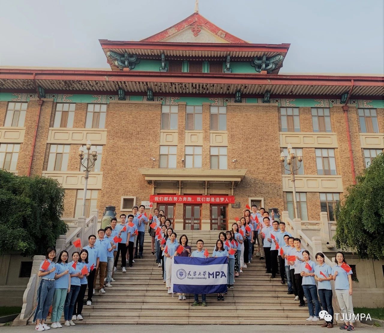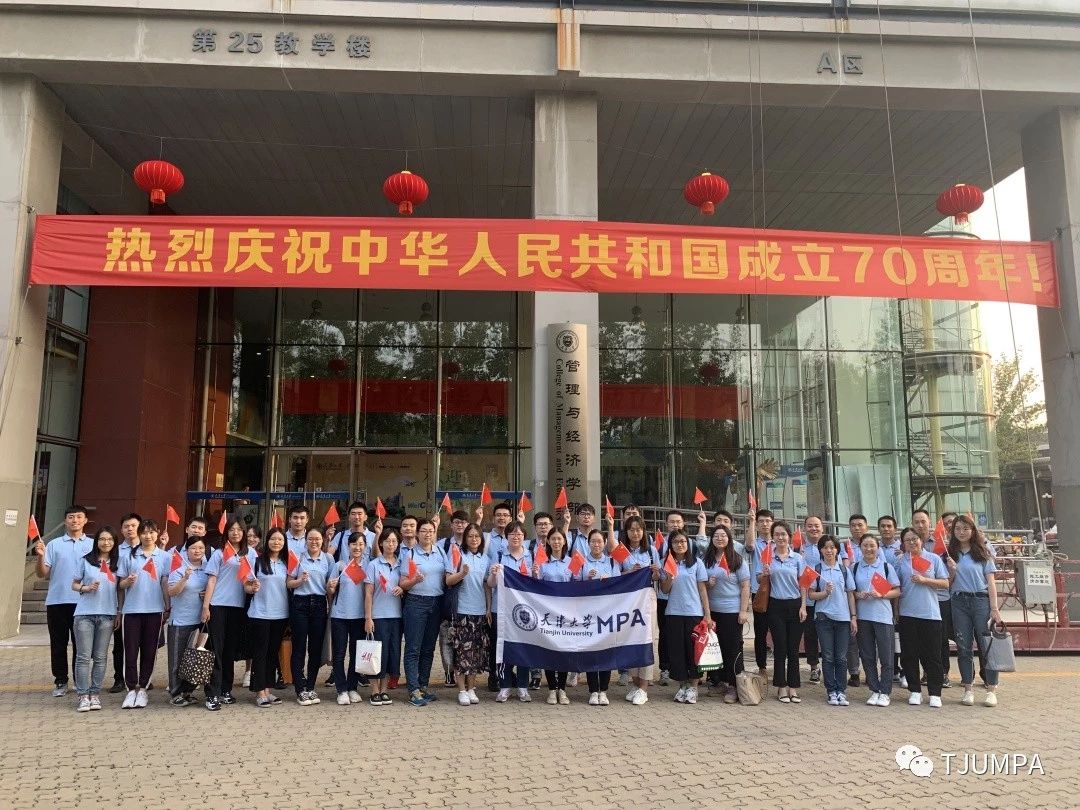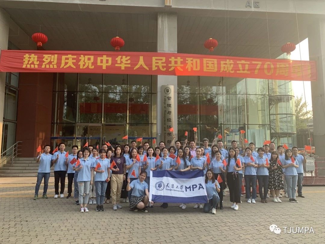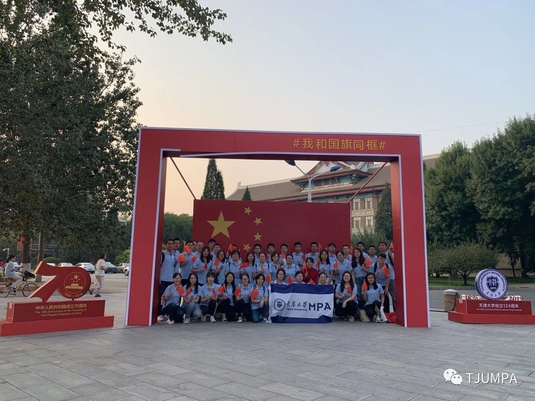 盛世中国、喜迎华诞,为庆祝新中国成立70周年,9月28日,2019级天津大学管理与经济学部MPA开展“与国旗同框、为祖国庆生、扬爱国情怀”迎国庆活动。