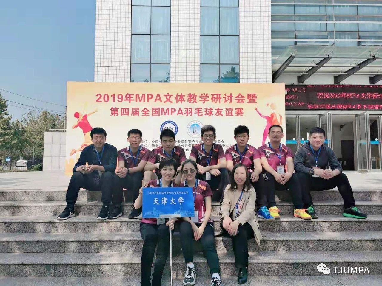 10月19日,2019年MPA文体教学研讨会暨第四届全国MPA羽毛球友谊赛在河南省郑州市华北水利水电大学拉开帷幕。天津大学10位MPA学子代表参赛,领队老师毕珍珍,教练张锡旺。