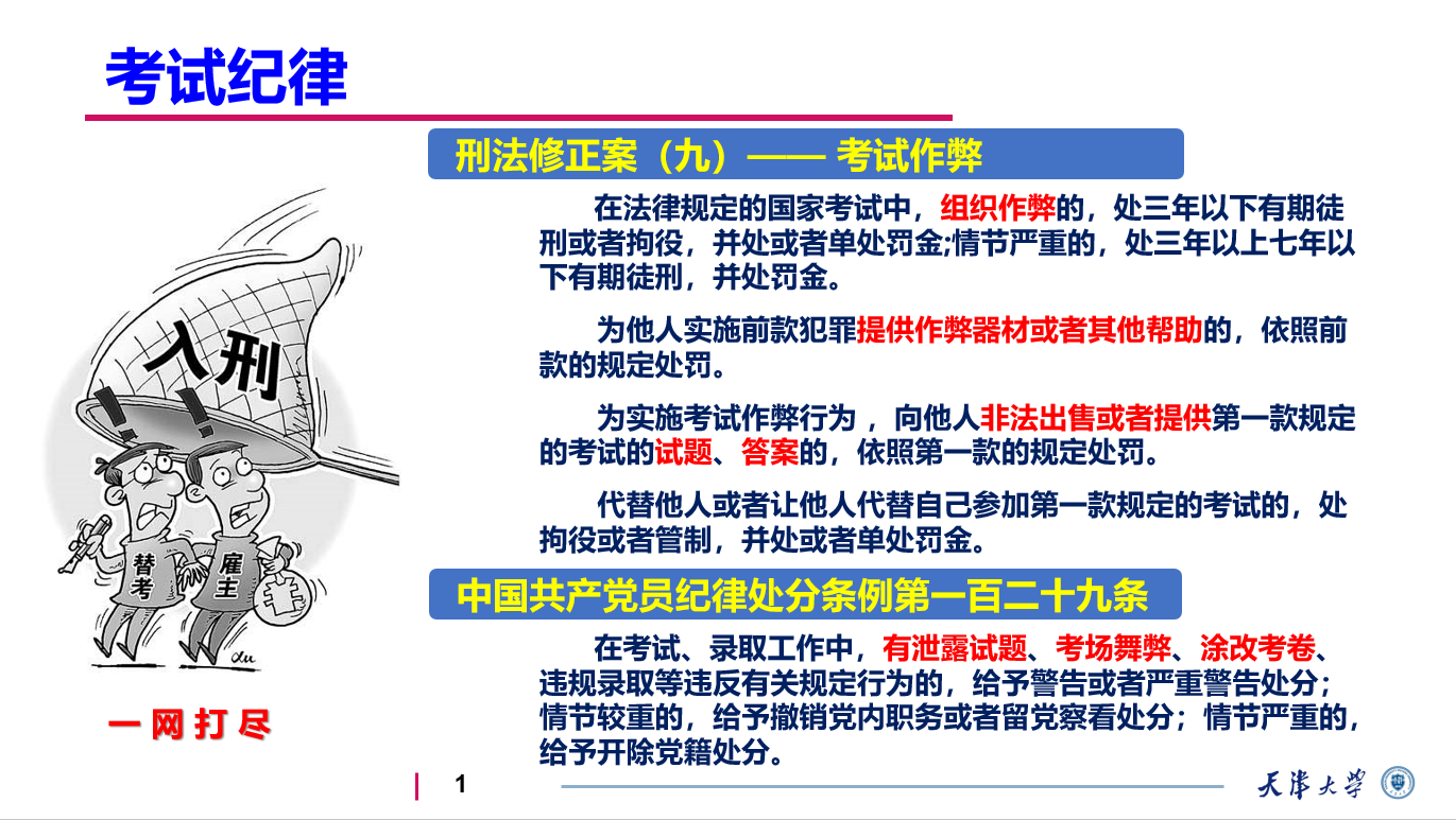 一、2015年《刑法修正案(九)》颁布实施,明确将“组织作弊”“提供作弊器材或其他帮助”“非法出售、提供考试试题答案”“代考替考”列为犯罪行为。2016年新修正实施的《教育法》,在《刑法修正案(九)》基础上对考试作弊又作出了进一步的规定。研究生考试开考后,一经发现涉考违法行为的,一律交由公安机关处理,作弊者将受到刑法严惩。